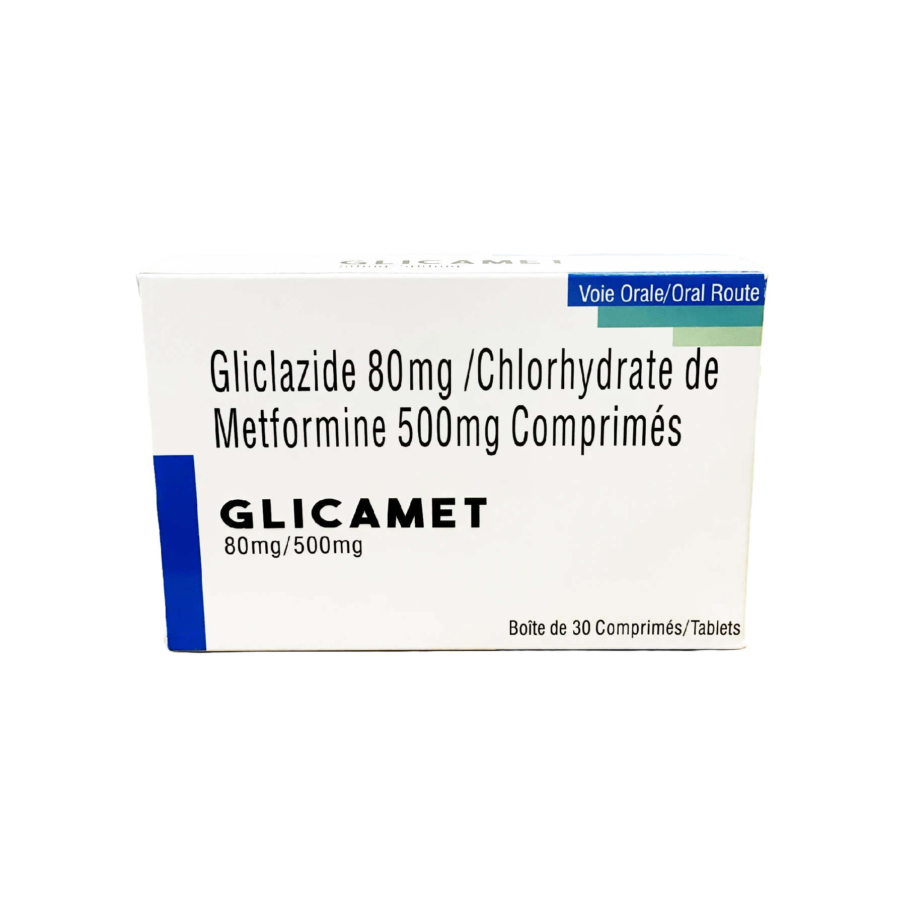 Glicamet® 80 mg/500 mg est un médicament antidiabétique oral qui associe le gliclazide (un sulfamide hypoglycémiant) et la metformine (un biguanide). Chaque comprimé contient 80 mg de gliclazide et 500 mg de metformine. Cette combinaison est souvent utilisée lorsque l’une ou l’autre de ces substances actives, prise seule, ne permet pas de maintenir une glycémie adéquate chez les patients atteints de diabète de type 2.