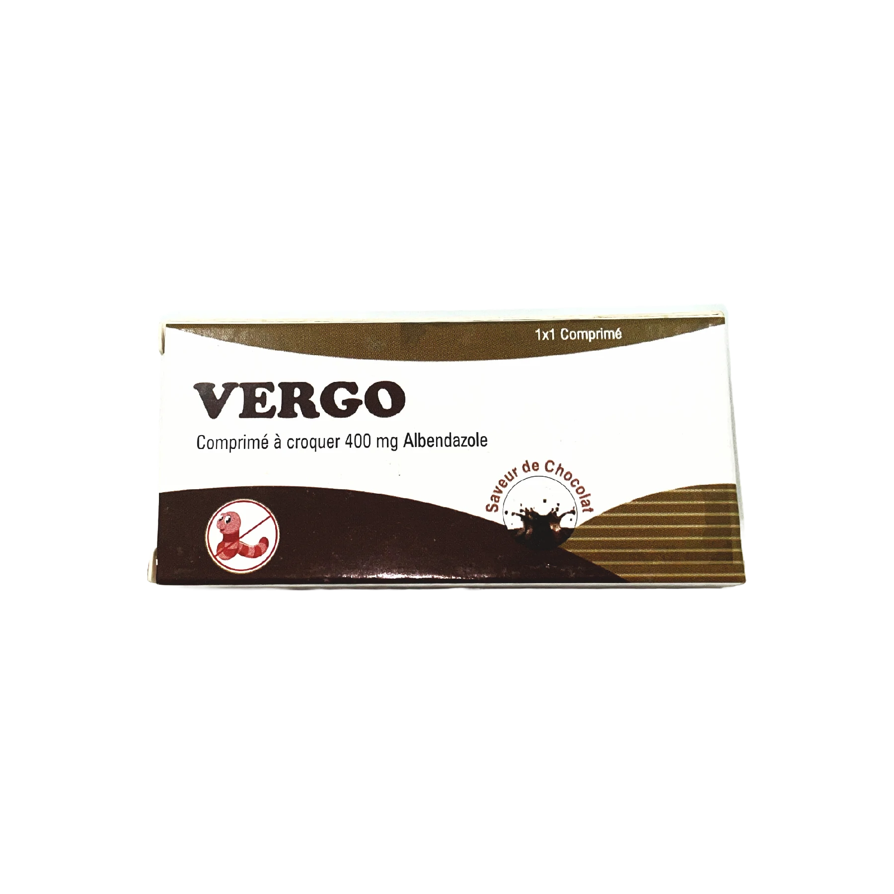 Vergo® 400 mg est un comprimé utilisé pour traiter diverses infections parasitaires intestinales. Avec un seul comprimé par boîte, il est conçu pour une prise unique, offrant un traitement efficace et pratique contre les vers intestinaux.