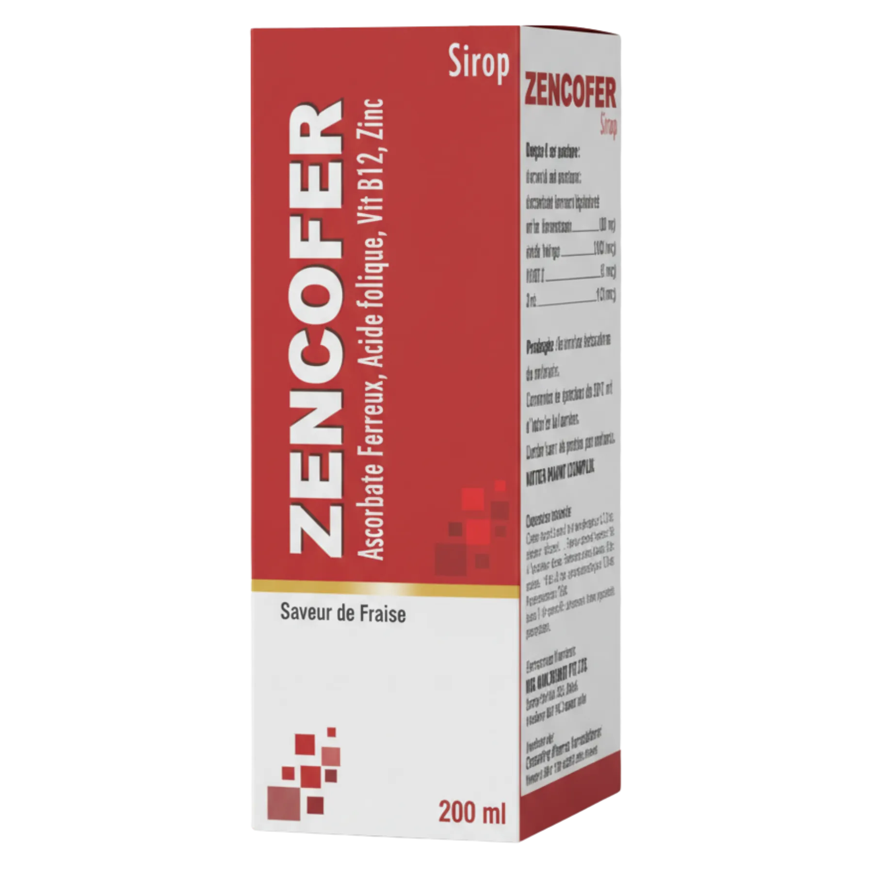 Le sirop Zencofer® 50 mg/5 ml est une association d’agents anti-anémiques et de suppléments vitaminiques. Il est spécifiquement formulé pour le traitement et la prévention de l’anémie ferriprive (causée par une carence en fer) et des carences en acide folique et en Vitamine B12, ainsi que des déficits en Zinc qui peuvent accompagner ces états. Le fer est un composant vital de l’hémoglobine, l’acide folique et la Vitamine B12 sont essentiels pour la maturation normale des globules rouges.