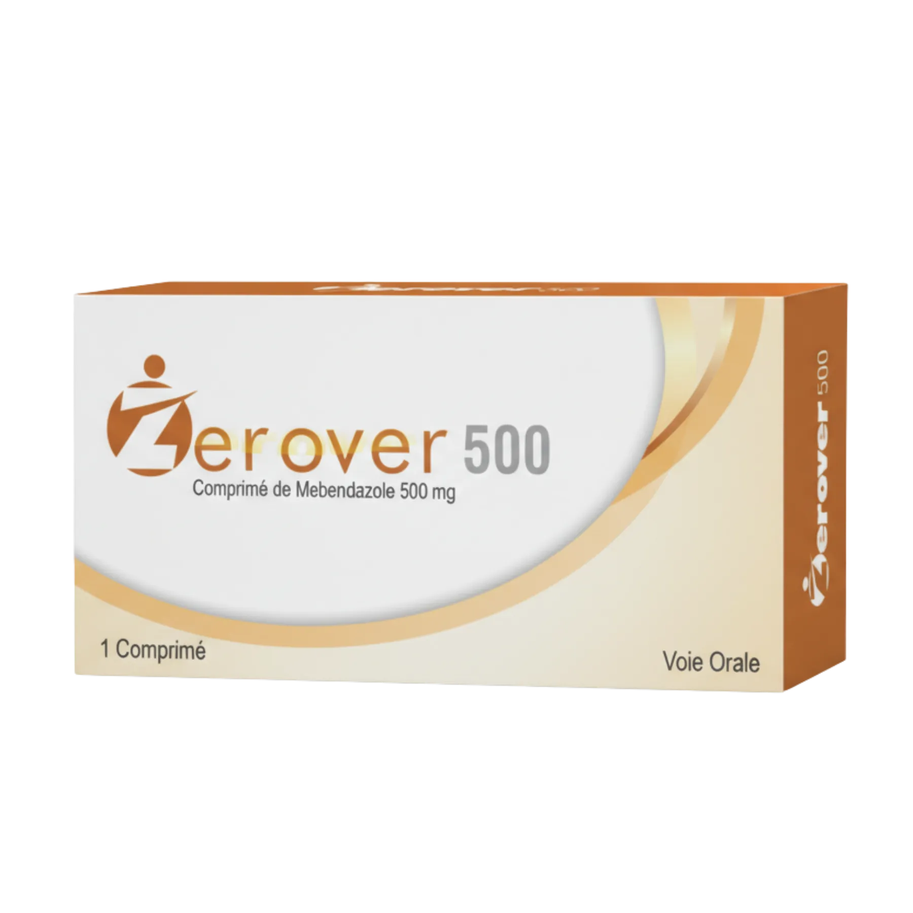 Le comprimé Zerover® 500 mg est un anthelminthique à large spectre, dont la substance active la plus probable est le Mébendazole. Il agit en interférant avec le métabolisme des glucides chez le ver, entraînant un épuisement de ses réserves d’énergie et, finalement, sa mort. Il est principalement utilisé pour traiter les infections gastro-intestinales causées par divers types de vers. La présentation en boîte de 1 comprimé est généralement destinée au traitement en dose unique de certaines parasitoses.